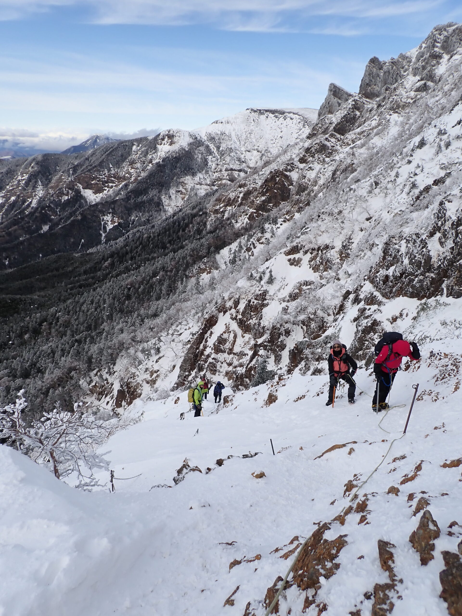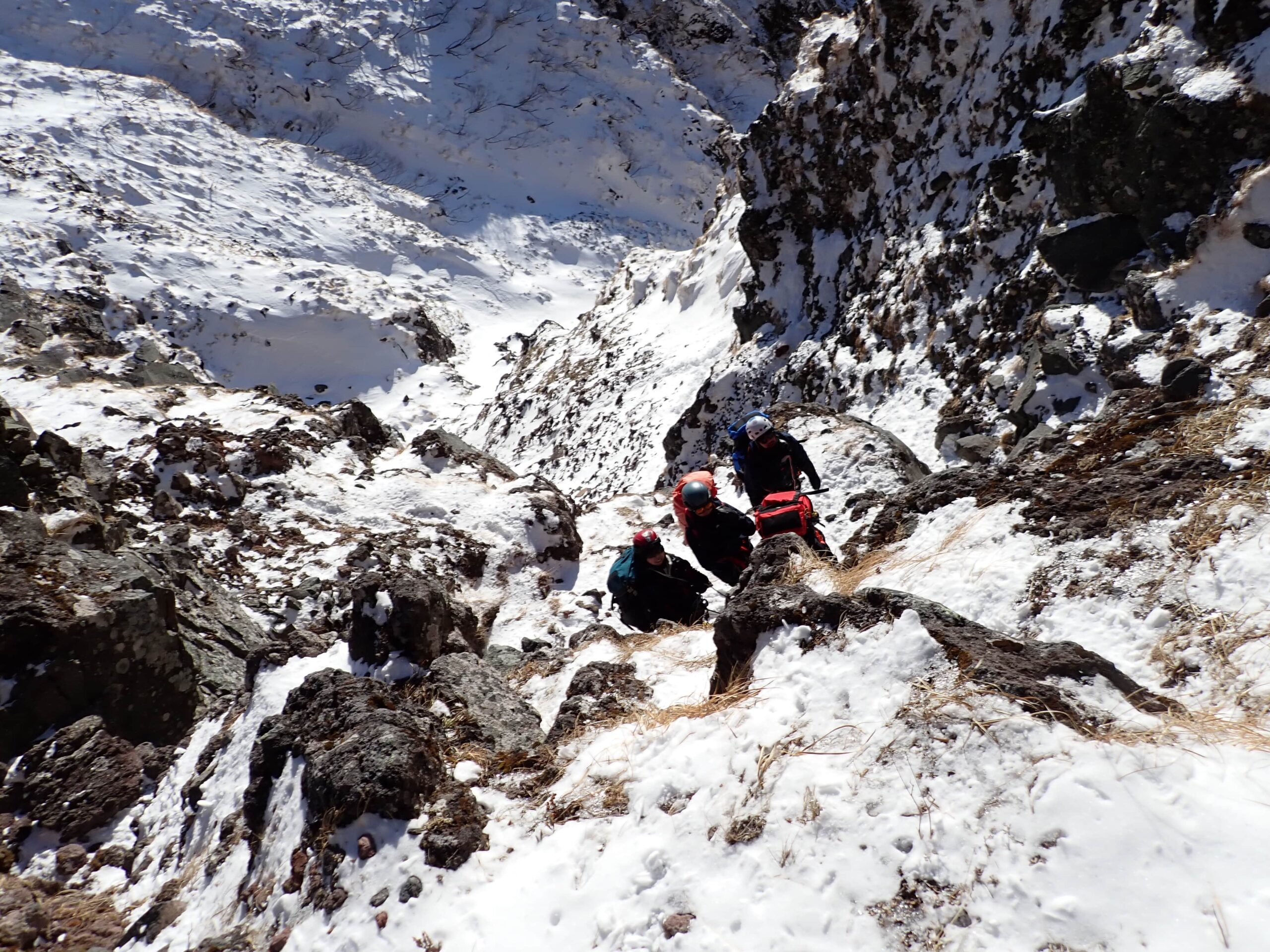 基本的に山小屋を利用せず、テント、雪洞、ツェルト泊で雪山、岩登り、沢登りを行う講座です。