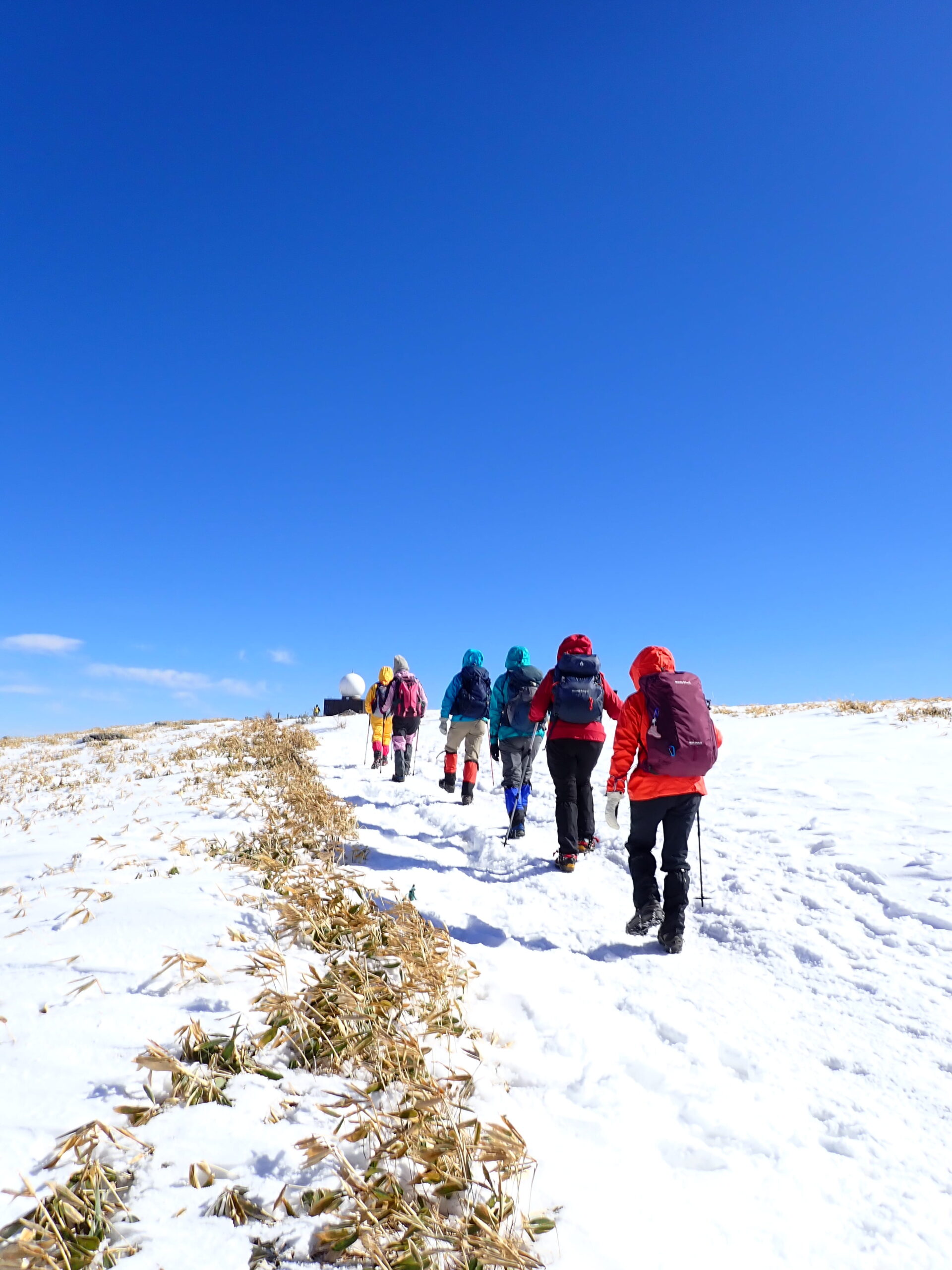 霧ヶ峰に行ってきました。この時期の霧ヶ峰はビーナスラインの大部分が冬季通行止めのため、明るい雪原と遮る物も無い大展望の中にあります。車山肩から背後の北アルプスを振り返りながら南アルプス北部、富士山、八ヶ岳の展望の中を気象レーダーがある車山に立ちます。ここを過ぎると登山者もいなくなり、浅間山を見ながら車山乗っ越し、蝶々見山と白い山を辿ります。蝶々見山からは足元の八島湿原の上に北アルプスが見事でした。