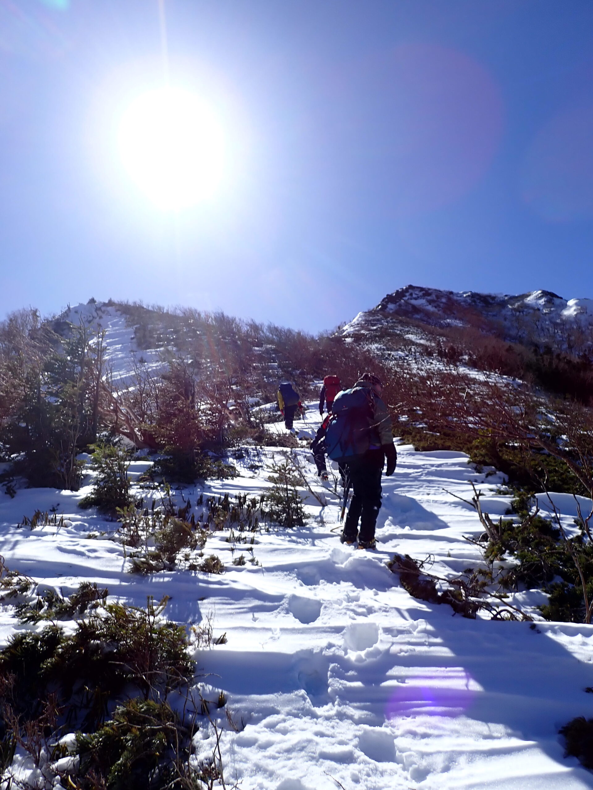 北沢峠から甲斐駒ヶ岳。かつての人気ルート・戸台から北沢峠は、完全に貸し切り。戸台河原沿いの道は、ほぼ無くなり、流された橋の箇所は渡渉でした。誰もいない北沢峠・北沢からアサヨ峰に転進しました。仙水峠からのラッセルは厳しく、体調もあり、栗沢山む手前で引き返しました。二日目夜半から落雷、雪、霙が降り、ワカンを履いて下山しました。